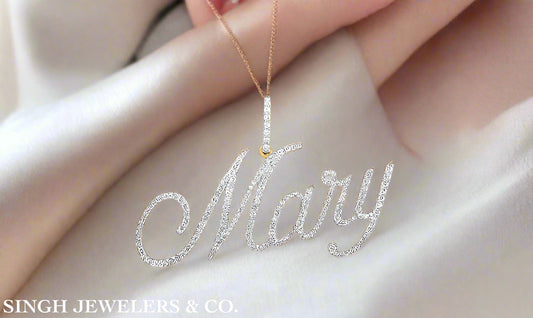 Custom Name Pendant – 10K Yellow Gold, 7/8 Cttw Round Diamonds, Personalized Mary Pendant