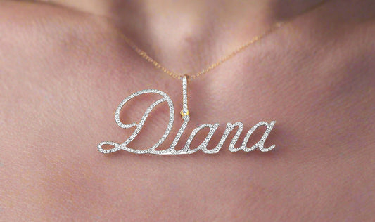 Diana Custom Name Pendant – 10K Yellow Gold, 7/8 Cttw Natural Round Diamonds, Personalized Jewelry