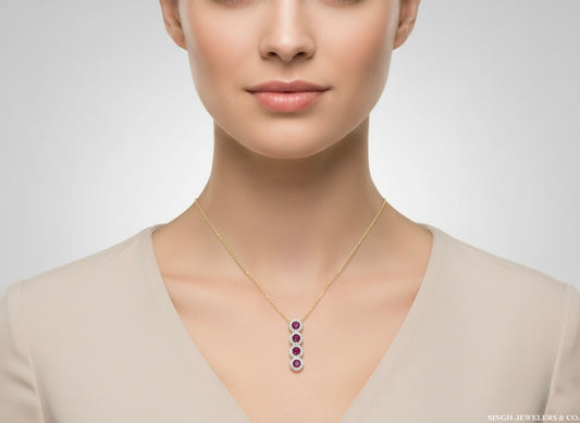 Diamond & Ruby Necklace – 14K Yellow Gold, 18"