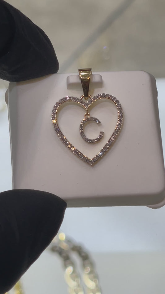 10K Heart "C" Diamond Initial Charm 1/5 Cttw with 18" Singapore Chain – Elegant & Personalized Jewelry