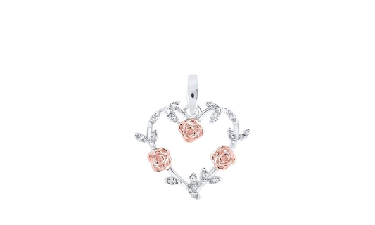 Sterling Silver Rose-Tone Heart Butterfly Diamond Charm