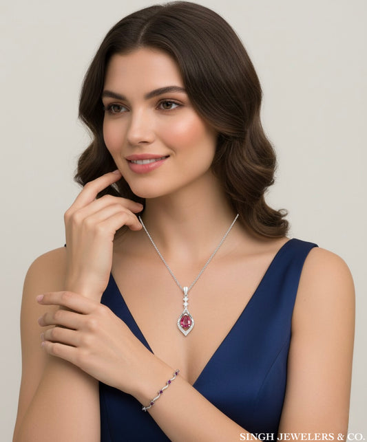 Sterling Silver Oval Ruby & Diamond Solitaire Pendant – 1 CTTW