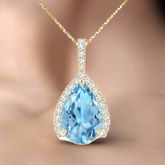 10K Pear Diamond Blue Topaz Birthday Birthstone Charm