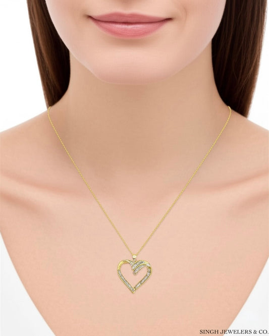 10K Heart "J" Diamond Initial Charm 1/5 Cttw with 18" Singapore Chain – Elegant Personalized Jewelry