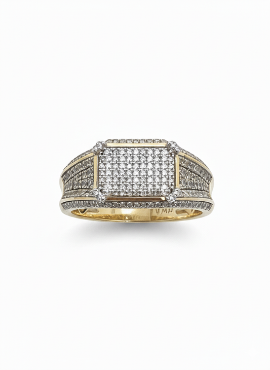 1 CTTW Miami Cuban Diamond Ring – 10K Yellow Gold