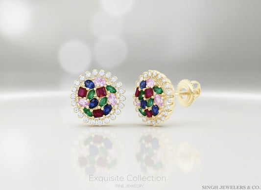 14K Natural Diamond & Multi‑Color Sapphire Round Earrings – 1/3 CTW
