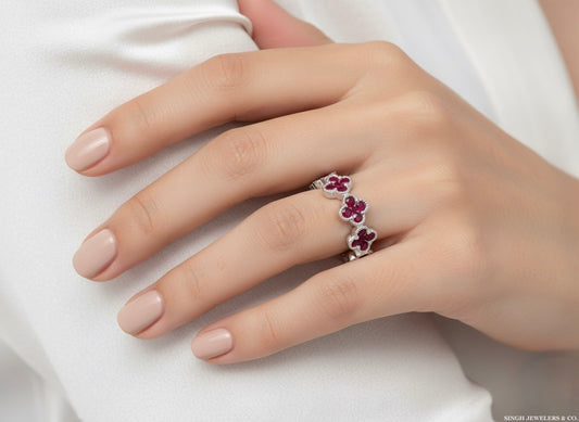 7/8 CTW Natural Ruby Clover Ring – 14K White Gold