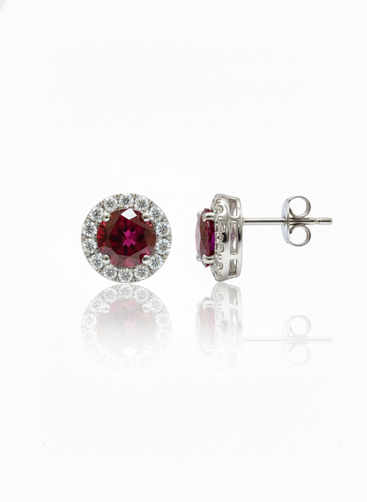 Sterling Silver Lab Grown Garnet Moissanite Earrings