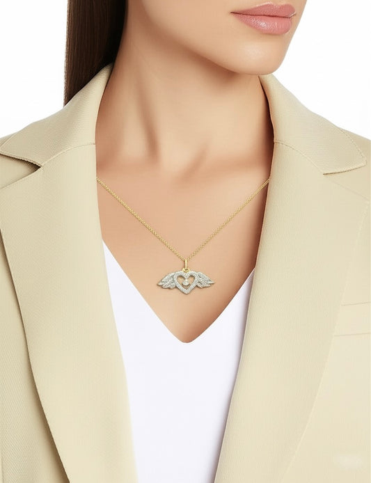 10k Gold MOM Wings Heart Charm with 1/6 CT Diamond