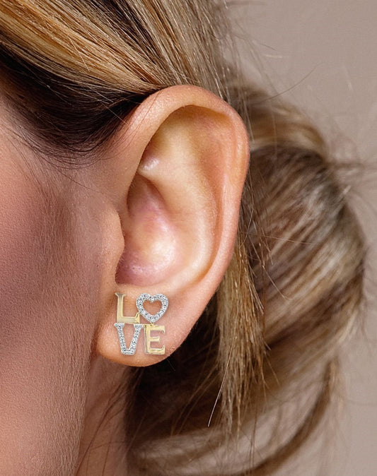 10k Love Diamond Studs Earrings | 1/5 Carat | Elegant Gold Jewelry