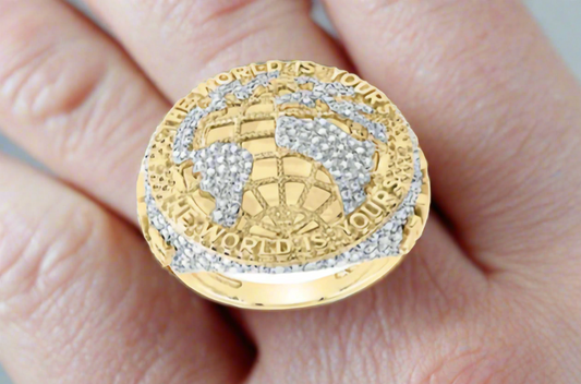 10K Yellow Gold "The World Is Yours" Ring – Custom Statement Jewelry