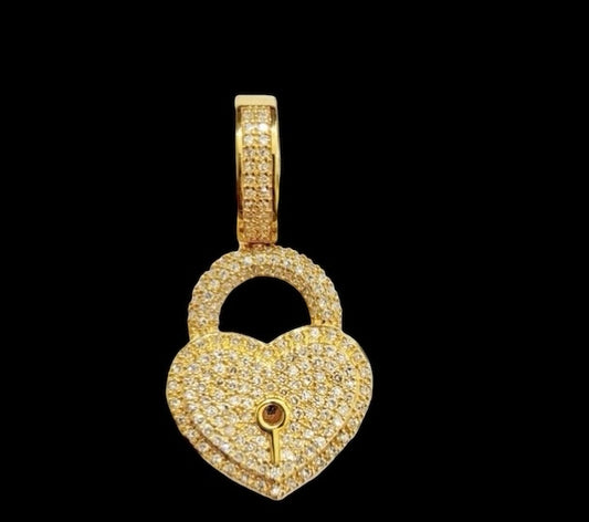 10K Yellow Gold Heart Key 1/4 Cttw Diamond Charm