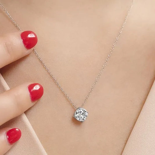 Sterling Silver Moissanite Round Solitaire Pendant – 0.25 CT, 18-inch Chain
