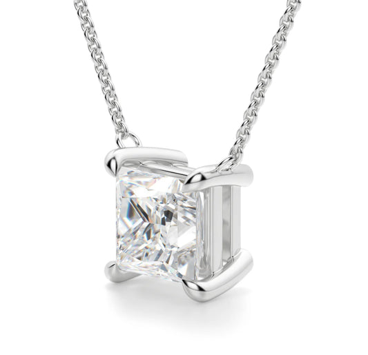 Sterling Silver 0.25 CTTW Moissanite Pendant with Princess Cut and 18" Chain