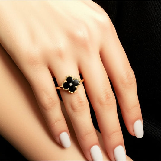 White Clover Vancleef Inspired Ring in 10K Gold – 1/12 CT Diamond