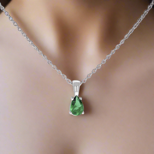 Sterling Silver Green Stone Pear Tear Drop Charm Necklace