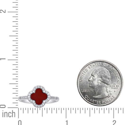 Sterling Silver Burgundy Clover Ring with White Sapphires – 10mm