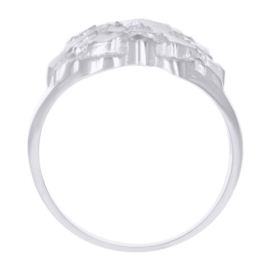 Sterling Silver Mens Nugget Ring – Diamond-Cut Bold Design