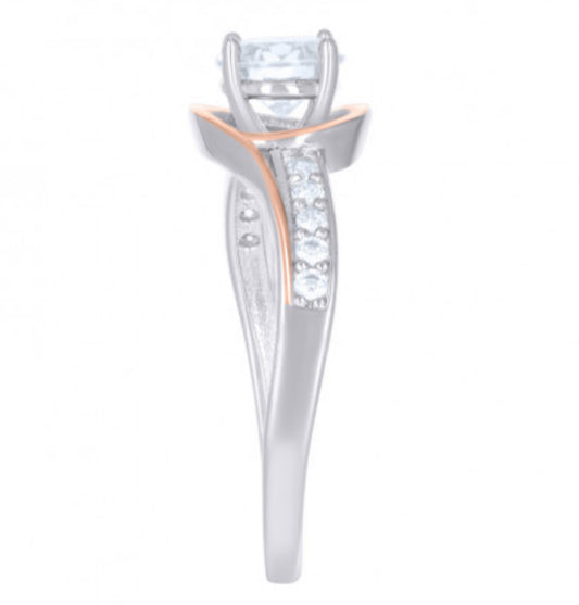Sterling Silver Rose-Tone Bypass Ring with White Sapphires – Size 6