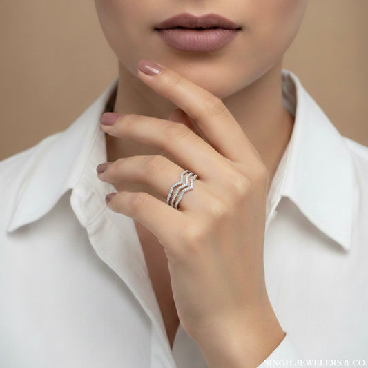 Sterling Silver Double V-Shaped White Sapphire Stackable Band