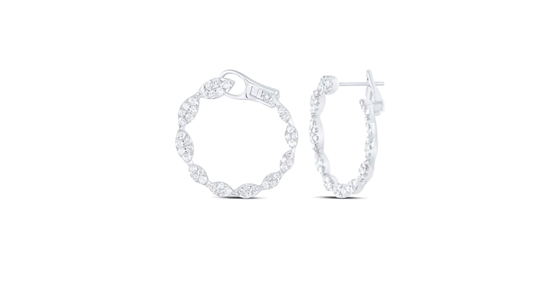 The 10k White Gold Total Diamond Carat Weight of these ANA M Fashion Hoops is 1 & 1/2 CTW T.W.