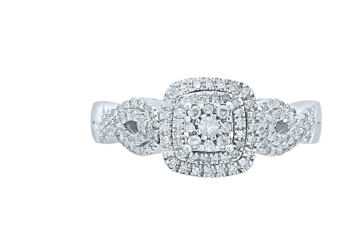 Indulge in the luxury of our 10k White Gold Infinity Square Diamond Engagement Ring, featuring a breathtaking 1/4 CTW T.W of brilliant natural diamonds. Available in size 6, this ring is a stunning and timeless piece that will surely capture your heart.