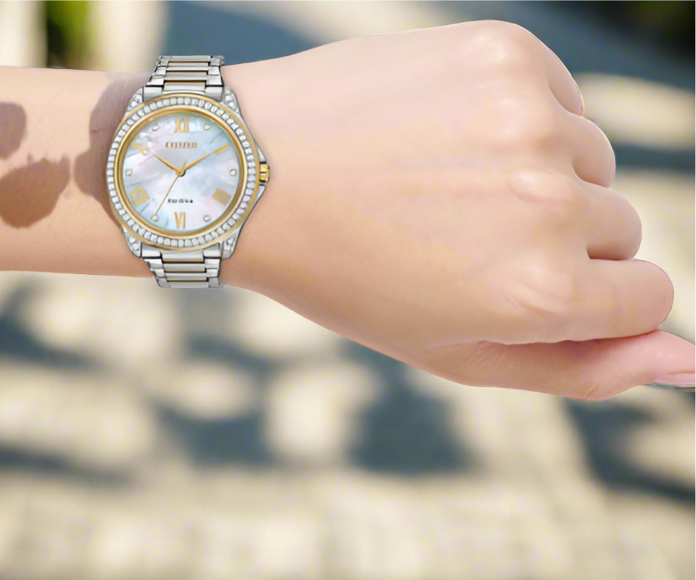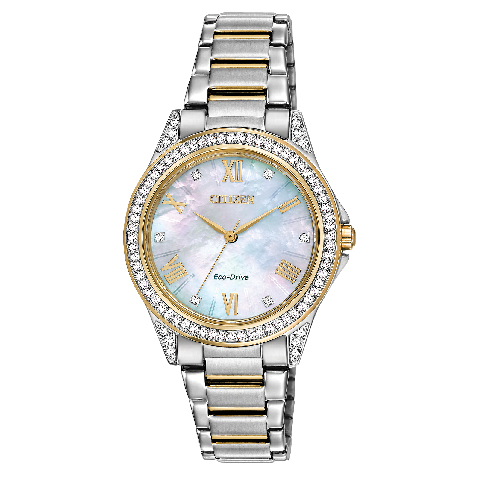 This Ladies Citizen Diamond Watch features a 34mm eco-drive movement with POVcrystal technology for eco-friendly and precise timekeeping.