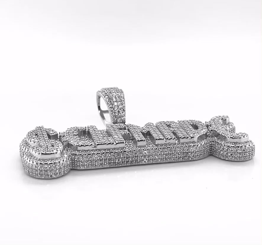 This Sterling Silver charm does not include a chain and has a total Moissanite carat weight of 5.20 CT. It boasts a VS clarity and D color, making it an excellent addition to any collection.