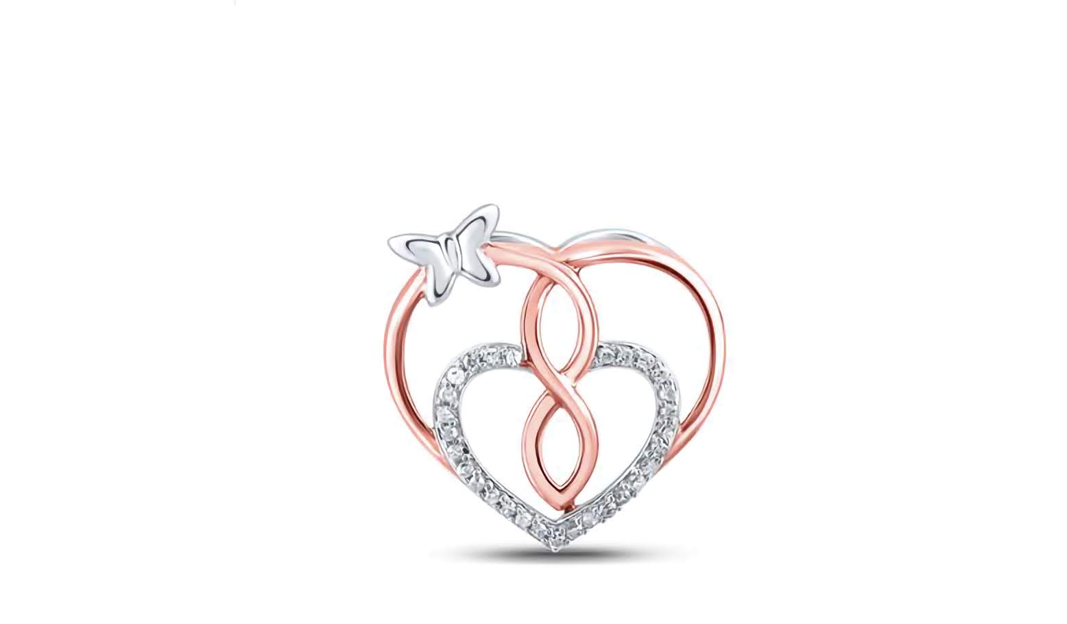 Sterling Silver Rose-Tone Heart Butterfly Diamond Charm