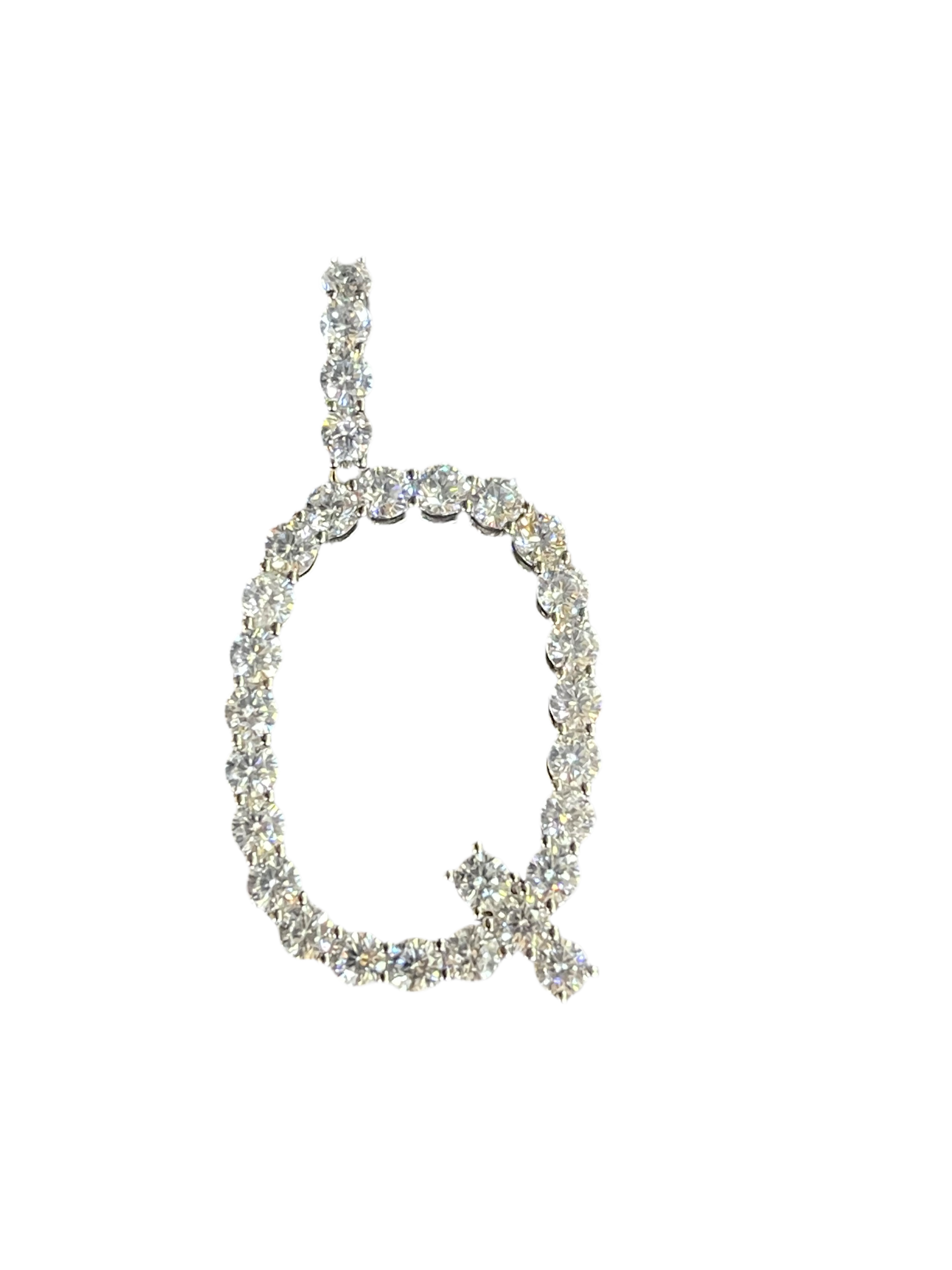 The Sterling Silver Round CZ Initial Q measures 1 inch in height and boasts a circular charm design.
