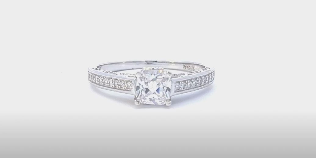 White Sapphire Cushion Cut Ring in Sterling Silver – Timeless Style